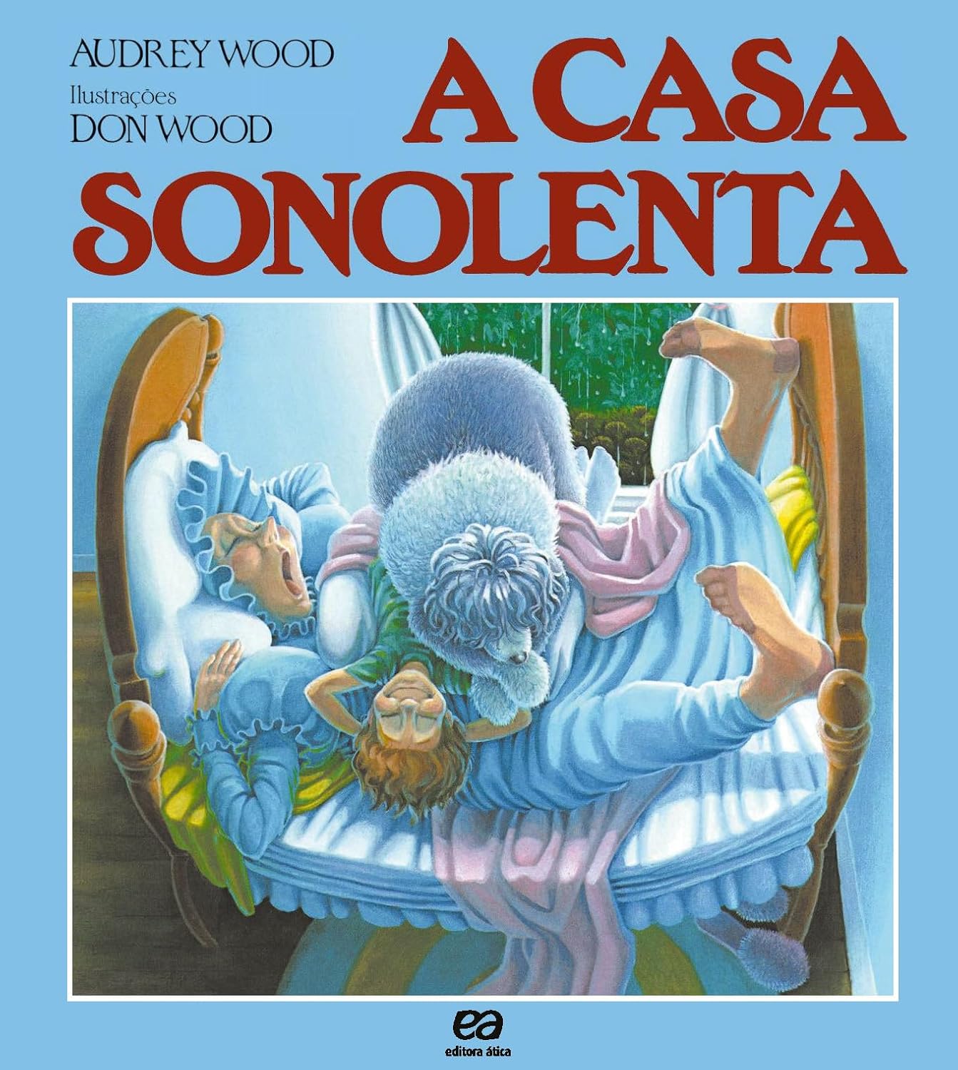 Numa casa sonolenta, com uma cama conforta´vel, todos vivem dormindo. As repetic¸o~es no texto da~o o tom sonolento, que e´ interrompido por uma pulguinha acordada.